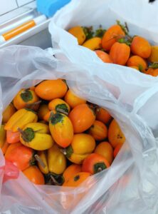 こんにちは!今日のお裾分けは「渋柿」です。 干柿を作る方はいらっしゃいますか? 吊るすのにちょうどいい具合に茎を切って届けてくれました。