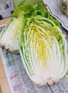 こんにちは! 今日も良いお天気ですが、空気がとても乾燥しています。適度に加湿をして体調を崩さないようにしたいですね。 今日は白菜が届きました。半分にカットしてのお裾分けです。水分たっぷりでシャッキシャキですよ~!