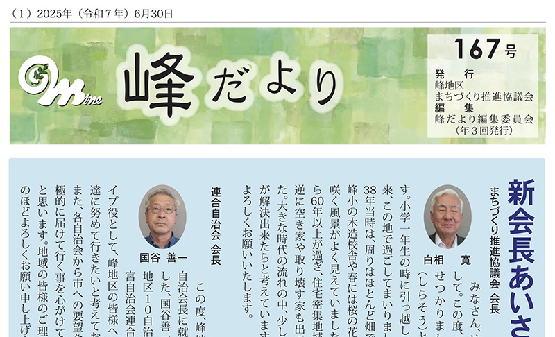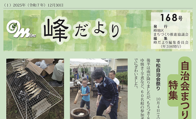 峰だより 167号・168号 をアップしました。 PDFファイルのダウンロードも可能です。